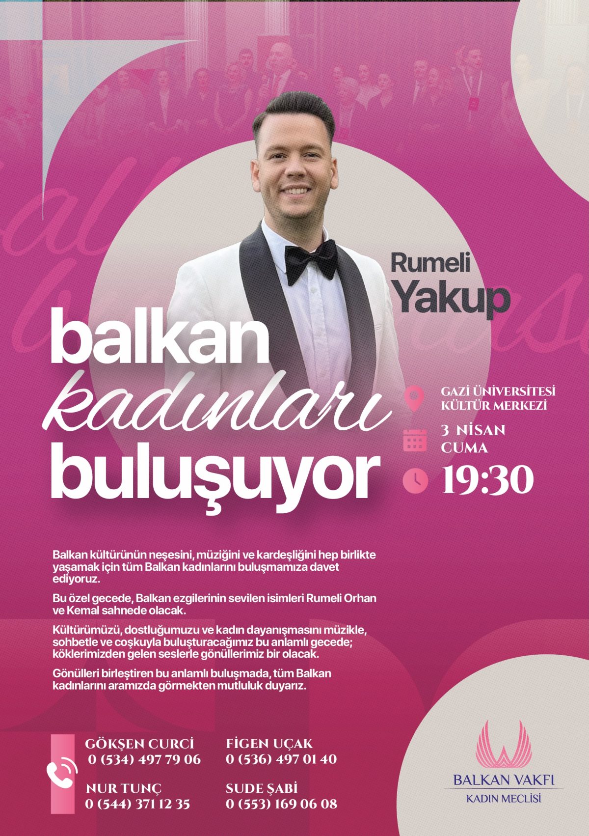 2026 – GELENEKSEL BALKAN KADIN BULUŞMASI 3 NİSAN 2026 TARİHİNDE GAZİ ÜNİVERSİTESİ KÜLTÜR MERKEZİNDE GERÇEKLEŞTİRİLECEKTİR.