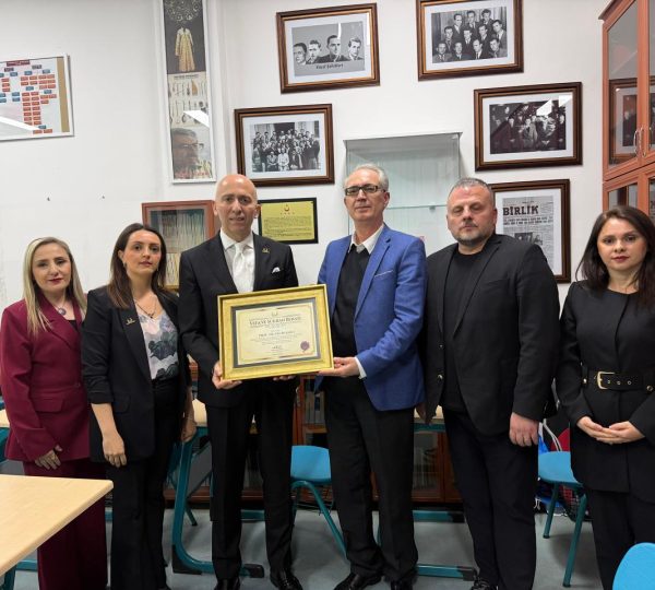 Balkan Ülkeleri Kültürel Araştırmalar ve Eğitim Vakfı olarak, Balkan coğrafyasında Türk dili ve kültürüne yaptığı kıymetli katkılar dolayısıyla Prof. Dr. Ergin Jable’ye Vefa ve Şükran Beratı takdim ettik. Priştine Üniversitesi’nde gerçekleştirdiğimiz bu anlamlı buluşmada, Balkanlar’da Türkçenin yaşatılması ve gelecek nesillere aktarılması adına verilen emeğin ne kadar kıymetli olduğunu bir kez daha ifade ettik. Prof. Dr. Ergin Jable’nin çalışmaları, sadece akademik bir üretim değil, aynı zamanda bir kültür nöbetidir. Takdim törenine, Yönetim Kurulu Başkanımız Hıfzı Kuruşa, Başkan Yardımcımız Burhan Varol, Genel Sekreter Yardımcımız Figen Uçak, Kosova Temsil ve Koordinasyon Kurul Başkanımız Didem Cibo Canbulat, kurul üyelerimiz Gönül Şinik Şari, Sevgi Fişar, Kadın Meclisi Yönetim Kurulu Üyesi Jirnet Drvar katılım sağladı. Bu anlamlı buluşmada, Balkanlar’da Türkçenin yaşatılmasının ve kültürel mirasımızın korunmasının ne kadar önemli olduğu bir kez daha açıkça ortaya kondu. Balkan Ülkeleri Kültürel Araştırmalar ve Eğitim Vakfı olarak, ilmiyle, emeğiyle ve duruşuyla iz bırakan kıymetli isimlerin yanında olmaya ve bu değerleri yaşatmaya devam edeceğiz.