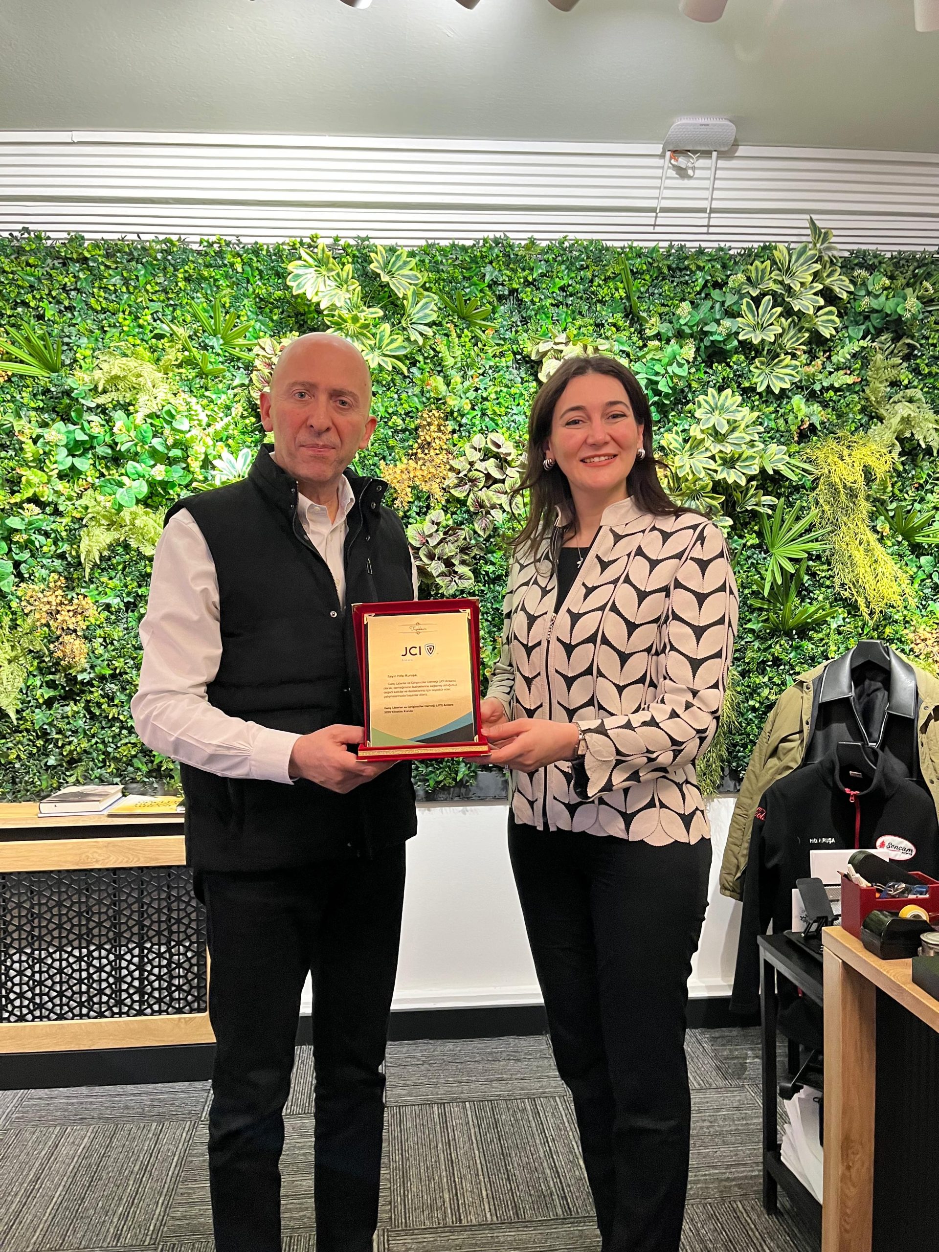 Genç Liderler ve Girişimciler (JCI) Derneği Ankara Şube Başkanı Sn. Dr. Begüm Erikçi ve Asbaşkan Sn. Av. Berkay Akan, Yönetim Kurulu Başkanımız Sn. Hıfzı Kuruşa’yı ofisinde ziyaret ettiler.